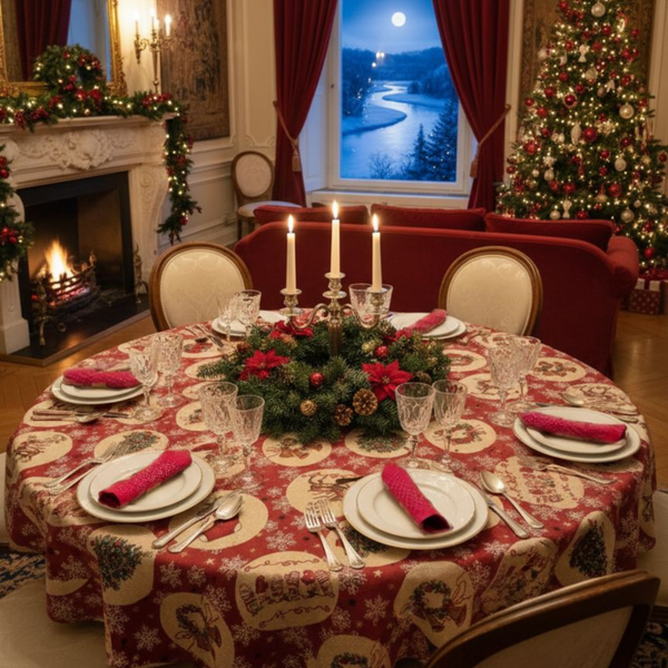 We hebben hier placemats en tafellopers van. En maar een paar tafelkleden.